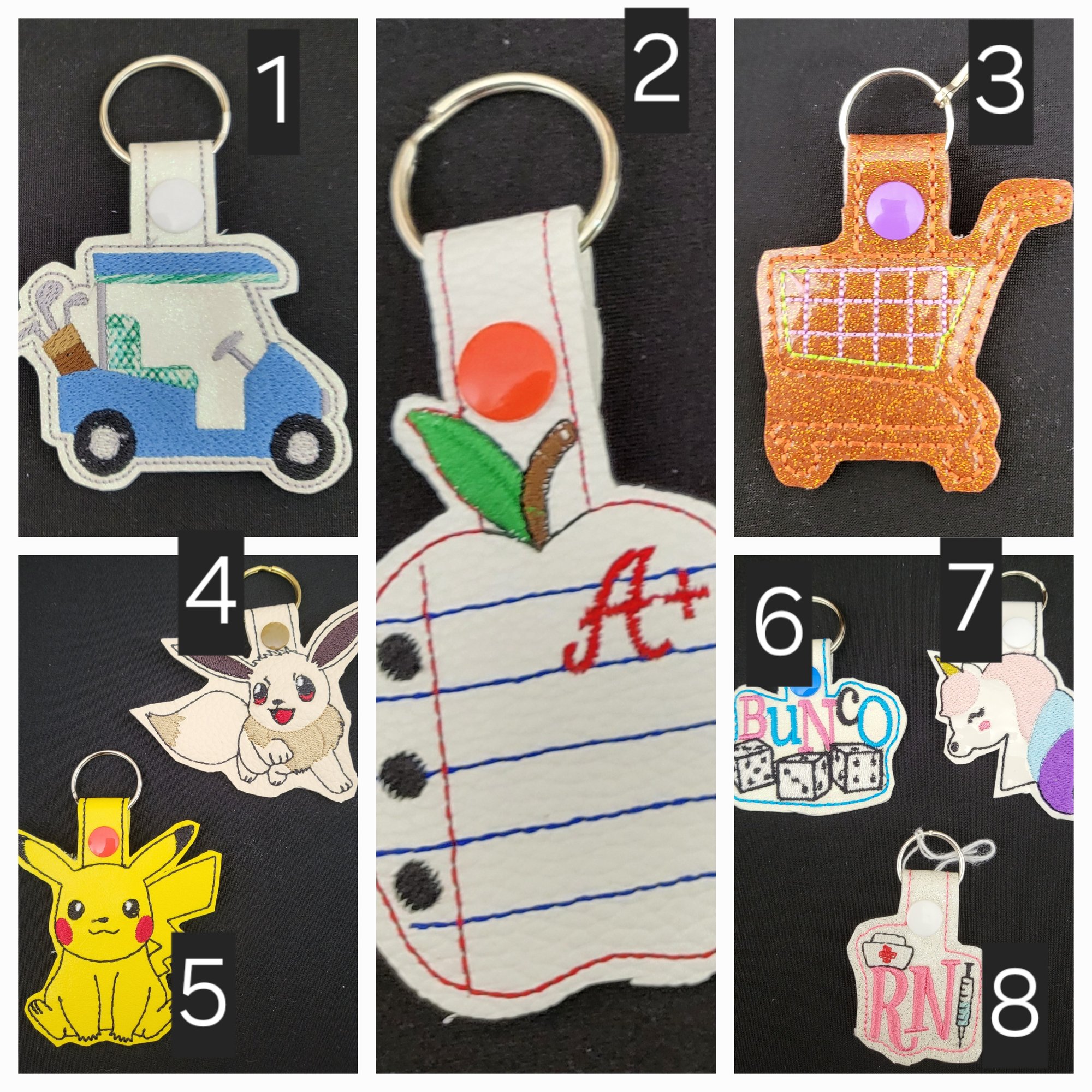 Keep track of your keys with one of our keychains. Please put selected number of item in the notes section on the checkout screen. Thank you!