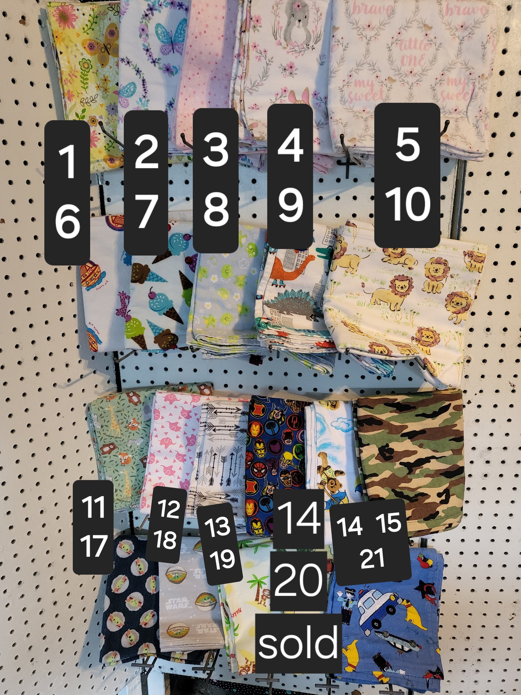 Receiving blankets to wrap your baby or just a light throw blanket to keep your little one warm. 35"x35" Please put selected number of item in the notes section on the checkout screen. Thank You!